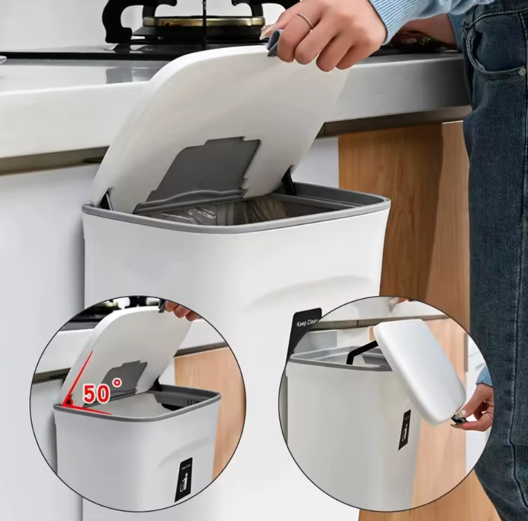 ✔ Capacité adaptée à la vie quotidienne : Disponible en 7L (26 × 16 × 23,5 cm), elle est parfaite pour les déchets de cuisine, salles de bain ou bureaux.