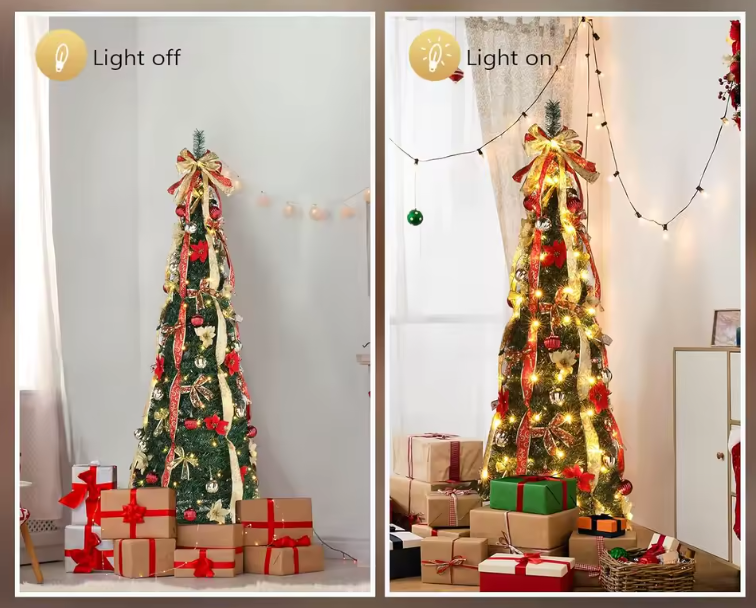 ✔ Installation ultra rapide : Grâce à son design pop-up rétractable, dépliez simplement le sapin et posez-le sur sa base — aucun montage compliqué requis !
