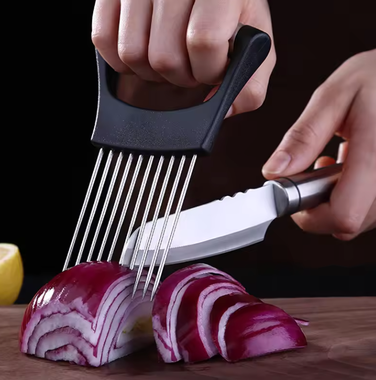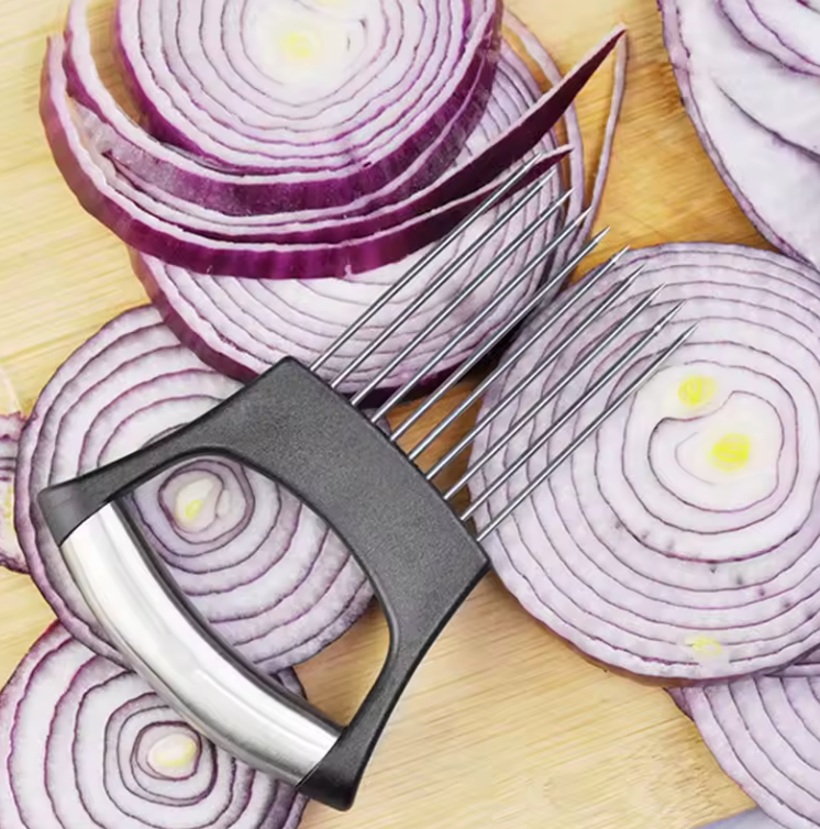 Simplifiez vos découpes avec ce support de coupe d’oignon en acier inoxydable 304, un gadget de cuisine ingénieux pour trancher sans effort, sans odeur sur les mains et avec une précision parfaite.